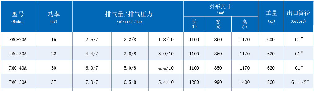 PMC系列永磁變頻螺桿空氣壓縮機技術參數